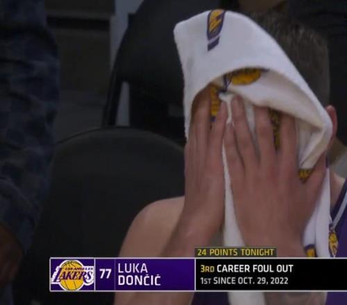 在第四节最后时刻,东契奇在防守雄鹿后卫小凯文-波特时尽管已经非常小心但仍被吹罚三分犯规,但此时湖人也没有挑战机会因此东契奇也被吹了第六次犯规不得不离场。下场后东契奇感到非常不满,他回到替补席后怒摔毛巾。