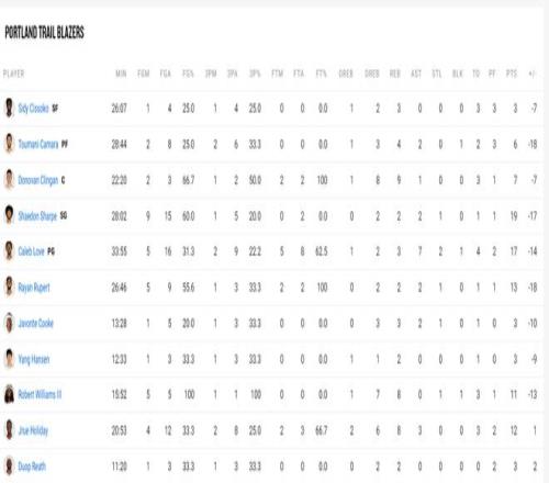 全场比赛杨瀚森12分33秒,三分3中1,拿到3分2篮板1失误,在场-9,杨瀚森在开拓者的定位就是一个拉开空间的四号位。