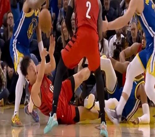 阿夫迪亚缺阵开拓者惨败,杨瀚森后脑被撞险受重伤,勇士打球真脏