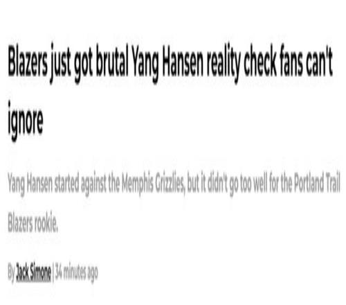 杨瀚森今日迎来生涯首次首发,但比赛也让外界更清晰地意识到,他目前还未具备胜任首发级别的出场时间的能力。波特兰开拓者在客场惨败给缺少莫兰特的孟菲斯灰熊,而杨瀚森甚至没能打满20分钟。