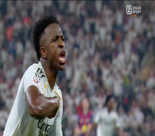 此役对阵巴塞罗那,维尼修斯在比赛上半场补时阶段突入禁区破门,帮助皇家马德里将比分扳为1-1。