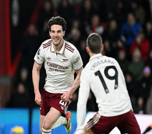 第71分钟,厄德高斜传,萨卡突入禁区倒三角传球,赖斯跟进推射得手,阿森纳3-1伯恩茅斯。这是身价1.2亿欧元的赖斯,生涯首次在英超梅开二度。