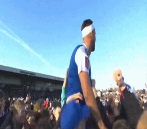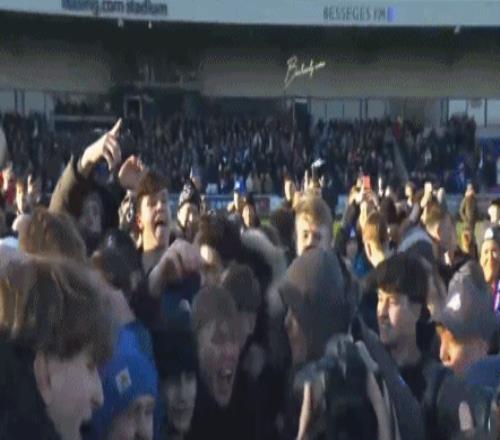 在主裁判吹响终场哨之后,5000名球迷涌入球场,将进球功臣道森扛了起来。麦克尔斯菲尔德主帅约翰-鲁尼,也就是曼联传奇射手韦恩-鲁尼的弟弟,也受到了英雄般的待遇。
