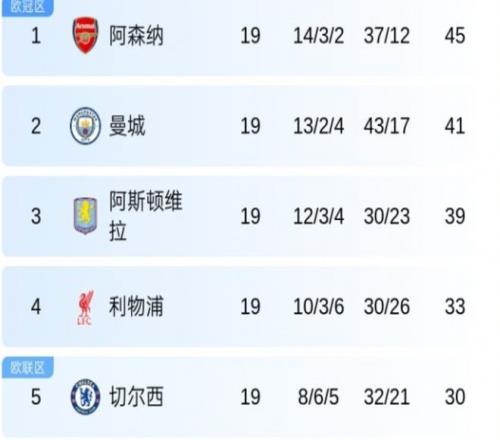 积分榜前7的球队,本轮只有阿森纳以一场4-1对维拉的大胜全取三分。