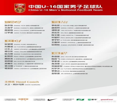 U16国足公布集训名单:泰山足校5人申花4人